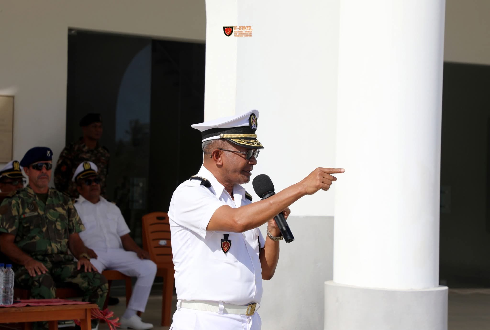 “Ohin loron ita servisu hamutuk atu kuidadu ho Dignidade família Komponente Naval nian ne’ebé hari mai husi FALINTIL, ne’ebé trasa mai husi povu maubere-oan, tanba FALINTIL mak aliserse bá Forsa Defeza Timor-Leste (F-FDTL) atu hatutan FALINTIL nia lala’ok tanba ne’e mak se deit mak tama Forsas Armadas ita sai família bo’ot Komponente Naval.”